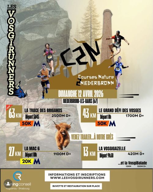 Depuis 2017 la course historique des C2N a subi une modification importante, puisqu'elle est passée de 58 à 43Km. L'objectif de ce "lifting" est double : il s'agit d'une part de supprimer la grande "traversée" un peu monotone après le Windstein, et de recalibrer le format afin d'avoir une meilleure cohérence dans l'offre proposée aux coureurs. En effet, la distance du GDV étant trop proche de celle du DDS, en le raccourcissant nous espérons tenter des habitués de la MAC VI à franchir le pas et à s'essayer sur une distance marathon qui sera plus accessible qu'un 58Km.