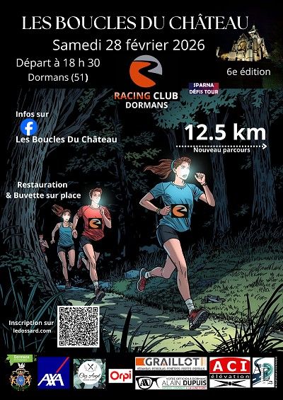 Les boucles du château est une course qui se déroulera dans le parc du château de DORMANS. Elle est composée de 3 boucles de 3km750 dans les chemins du parc de château. L'événement se déroule en nocturne avec un départ à 18H30 devant le château donc la lampe frontale est obligatoire. Le retrait des dossards aura lieu le vendredi après-midi (14H-17H) et le samedi après-midi au château de DORMANS. Les informations seront disponibles sur la page FACEBOOK des boucles du château.