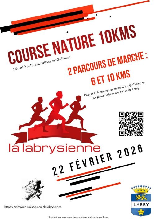 La Labrysienne est une course nature organisée par l’association Motiv'Run à Labry, en Meurthe-et-Moselle. Elle propose un parcours de 10,6 km sur les chemins et dans les bois de la commune, avec un dénivelé d’environ 150 mètres. Des parcours de marche de 6 km et 10 km sont également disponibles. L’événement se déroule dans un cadre rural calme, au cœur des sentiers lorrains, propice à la pratique sportive en pleine nature.
