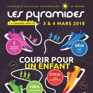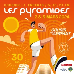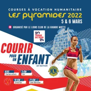 Courses les Pyramides qui se dérouleront à la Grande Motte. Elles sont organisées par le Lions Club de La Grande Motte en collaboration avec la ville de La Grande Motte et Midi Libre. Le départ des courses sera donné Avenue Robert Fages à la Grande Motte, les arrivées, se feront sur la même ligne que les départs. Parcours plat et roulant sur route et piétonniers, étang, golf et retour en front de mer