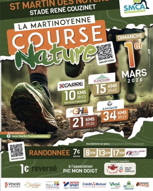 Après le succès qu'ont rencontrées les premières éditions de la martinoyenne grâce à votre forte participation, les membres de l'association Saint Martin Course Aventure accompagnés de leurs bénévoles, commissaires et partenaires sont heureux de vous convier à la 4ème édition de notre course et randonnée nature. Au programme : 3 courses adultes et 2 circuits de randonnée pédestre. Chaque coureur selon son niveau et ses envies pourra se dépasser et découvrir notre patrimoine culturel local en se promenant dans la campagne environnante martinoyenne. Les randonneurs inscrits sur place s'élanceront librement sur le circuit de leur choix (5kms accessibles aux poussettes ou 10kms).