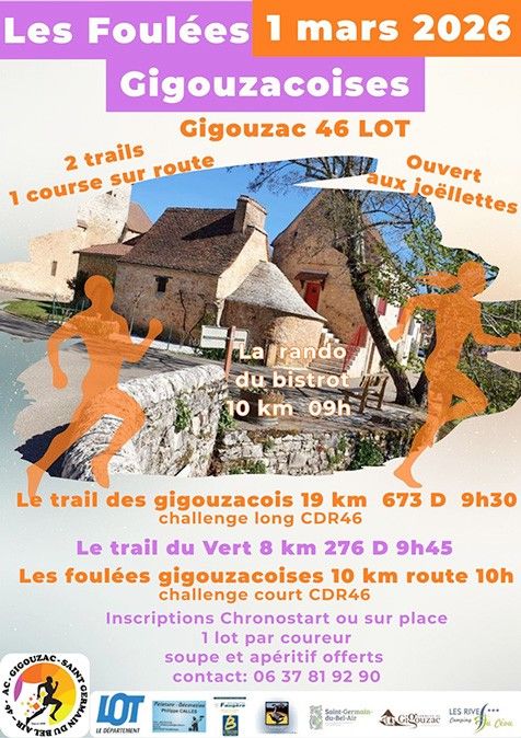 Les Foulées Gigouzacoises sont organisées par l'AC Gigouzac/Saint-Germain dans le village de Gigouzac, dans le Lot.