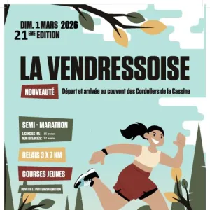 La Vendressoise sur un parcours fléché de 21.1 km mesuré officiellement. Il s’effectue sur trois boucles identiques et emprunte la RD12, les rues et chemins communaux. Chaque intersection sera surveillée par des signaleurs et/ou des pompiers qui régulariseront la circulation. Les kilomètres seront indiqués au sol. Les courses des jeunes s’effectuent sur une ou plusieurs boucles dans les rues de VENDRESSE ( selon la catégorie ).