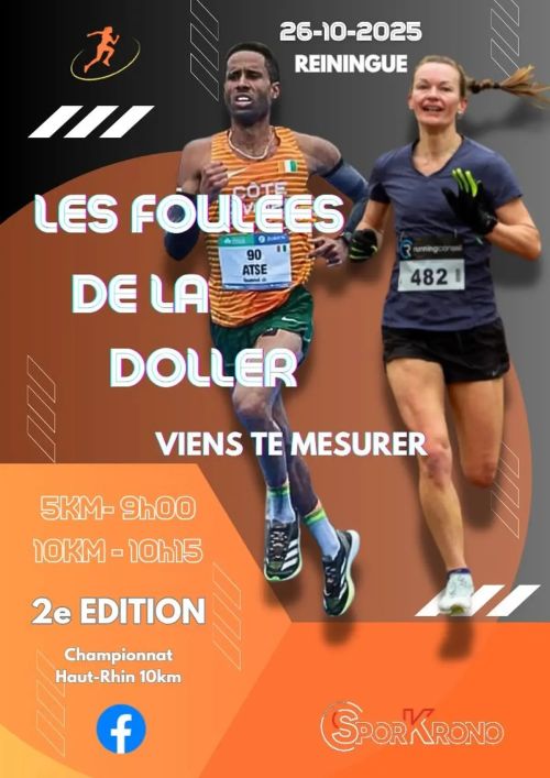 Les Foulées de la Doller invitent les coureurs à découvrir Reiningue, un village alsacien niché dans le Haut-Rhin, à proximité de Mulhouse et traversé par la rivière Doller. Organisée par l'association Spiridon Sundgau, cette course propose des parcours plats et mesurés de 5 et 10 km sur les routes locales, dans un cadre calme et accessible. Rejoignez l'événement pour progresser à votre rythme, partager une ambiance conviviale et profiter d'une sortie sportive simple au cœur de la région.