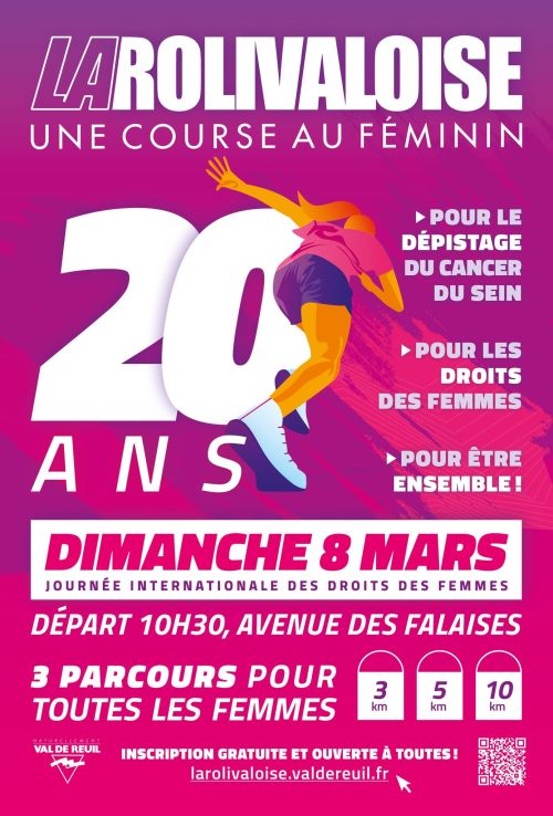 La Rolivaloise est une course et marche 100 % féminine organisée à Val-de-Reuil, dans l’Eure. Elle se tient chaque année le 8 mars, à l’occasion de la Journée internationale des droits des femmes. L’événement propose plusieurs parcours : 3 km, 5 km et 10 km, accessibles en course ou en marche, avec ou sans chronométrage selon les distances. Le tracé emprunte des chemins variés, notamment la Promenade des Tilleuls, le Parc Sud et les berges de l’Eure, dans un cadre verdoyant et agréable.