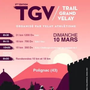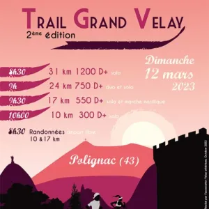 L'Association Velay Athlétisme organise le Trail du Grand Velay. Venez arpenter nos chemins Vellave, et découvrez un terrain de jeu varié à la découverte des plateaux de Polignac et son imposante forteresse. Accrochez vous pour un plongeon sur la vallée de la Loire et prenez le temps d'admirer une vue spectaculaire sur le château de Lavoute Polignac.