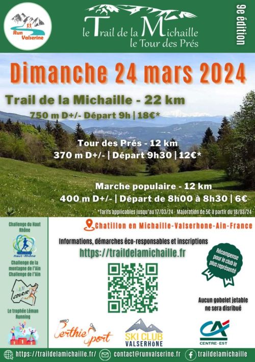 Le Trail de la Michaille, du nom du plateau s’élevant à plus de 500m d’altitude dominant Valserhône, vous propose trois parcours à la découverte du plateau du Retord qui, avec sa situation névralgique entre Jura et Alpes, lui permet d’embrasser un panorama incomparable sur la chaîne du Mont-Blanc.