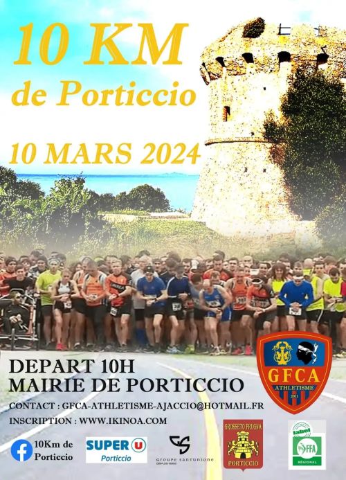 Le départ est fixé à 10h00 sur le parking situé à 30 mètres de la mairie de Porticcio Le retrait des dossards pourra se faire la veille de la course de 14h30 à 17h30 devant la mairie de Porticcio et le jour même de l’épreuve Un poste de ravitaillement sera mis en place sur le parcours du départ à l’arrivée et installé au 5ème kilomètre. Les organisateurs prévoient un fléchage au sol et le marquage visuel de tous les kilomètres.