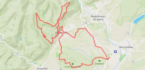 Entre chemins agricoles et chemins forestiers, passage insolite dans le Couvent d'Oberbronn, le Château de la Wasenbourg, les Pierres à Cupules, la tour du Wasenkoepfel, le belvédère Buckelstein avec une magnifique vue sur la plaine d'Alsace.