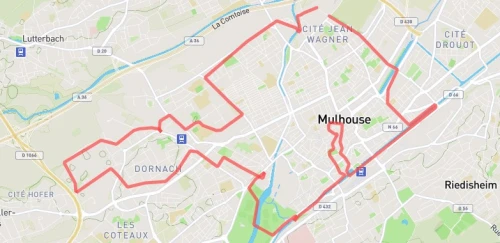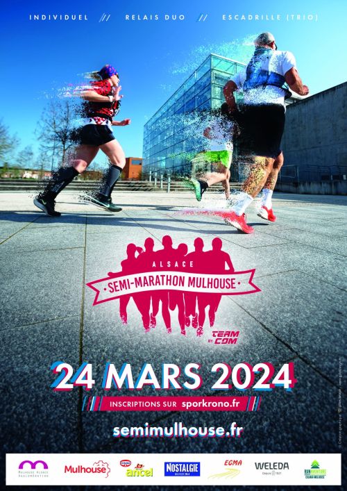 Semi-Marathon de Mulhouse, plat et rapide, avec passage devant les Musées et bâtiments remarquables de la ville.