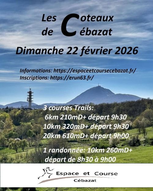 Les Coteaux de Cébazat est une course en individuel de 10 km ou 20 km. Une randonnée est également organisée sur le même parcours mais avec un horaire différent.