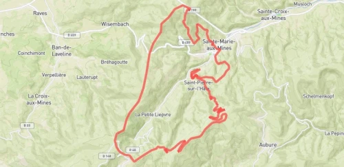 Notre "grand" trail, une belle aventure sur les crêtes du Val d'Argent. Un minimum d'expérience et d'autonomie sera nécessaire pour profiter pleinement de ce parcours. Jusqu'au pré du Haïcot, ce parcours est identique à celui du 23 km: il vous faudra donc surmonter la rude montée initiale de la pierre des trois bans (Ravitaillement 1), avant de suivre la crête du Hirzberg, qui vous emmènera jusqu'au petit Brezouard, au point culminant de la course, où vous pourrez profiter d'une vue exceptionnelle sur toutes les Vosges moyennes.
