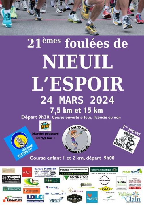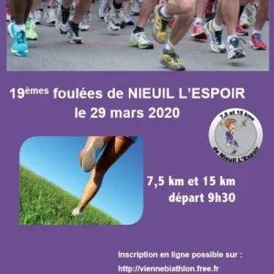 Foulées de Nieuil l'Espoir vous propose 2 parcours. Des douches sont à disposition après course au stade pour les hommes et à la piscine pour les féminines. Possibilité de repas sur place avec le traditionnel boudin.
