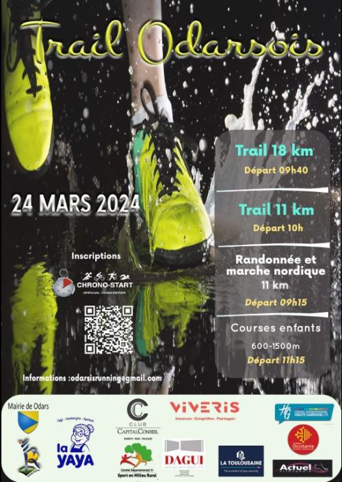 Le Foyer Rural d’Odars organise « Le TRAIL ODARSOIS ». Les courses du trail ODARSOIS se déroulent sur circuit mixte (~80 % de chemins) sur les terres vallonnées et sauvages du Lauragais.