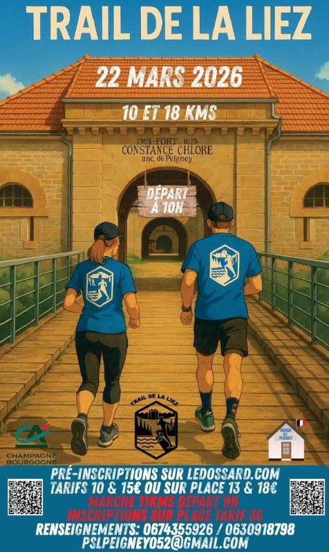 Le Trail de la Liez est une course nature organisée à Peigney, en Haute-Marne. L’événement propose deux distances de trail : 10 km (environ 250 m de dénivelé positif) et 18 km (environ 350-430 m de dénivelé positif). Une randonnée pédestre de 11 km est également proposée pour ceux qui préfèrent marcher. Les parcours empruntent des sentiers forestiers, des singles et traversent le Fort de Peigney. Ils offrent des vues sur le lac de la Liez et ses environs boisés, ainsi que sur les remparts de Langres au loin.