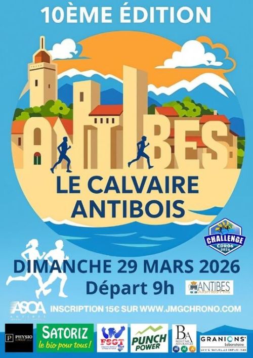 L'ASOA Run and Tri organise le Calvaire Antibois. Les concurrents s’élanceront de la plage de la Salis, dès 9h00, pour un parcours de 10 kms, empruntant le bord de mer, le Cap d’Antibes et surtout la montée du calvaire jusqu’au phare de la Garoupe.