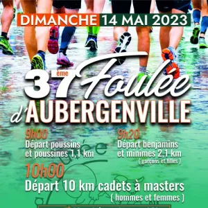 Foulée d'Aubergenville avec un 10km qualificatif aux Championnats de France, inscrit au challenge des Yvelines. Mesurage officiel FFA • 2 boucles - circuit rapide - Parcours aux normes IAAF permettant l’homologation des performances, dénivelé négatif inférieur à 1m/km, marquage tous les kms