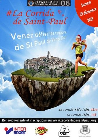 2ème édition de la Corrida de Saint Paul, épreuve pédestre de 8km, organisée par Sport Nature à Peille avec le concours du Conseil Général des Alpes Maritimes et la commune de Saint Paul de Vence.
