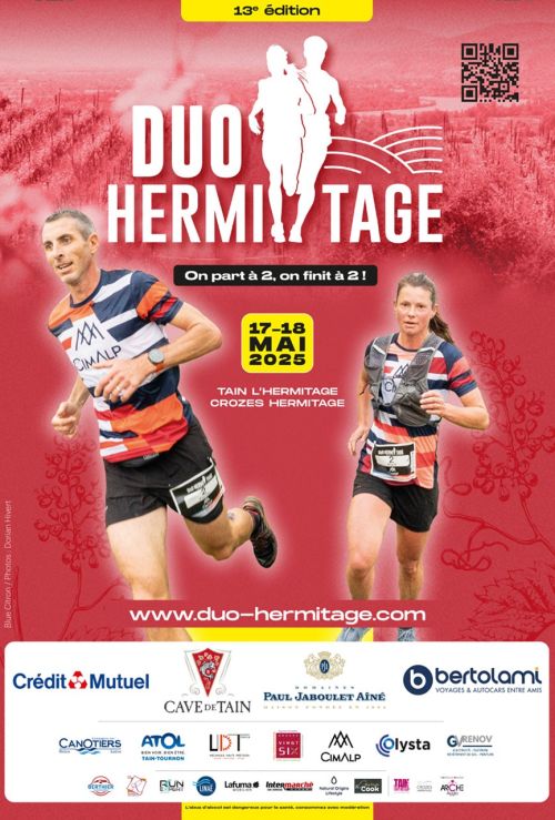 On part à 2, on finit à 2 ! Le Duo de l'Hermitage 16km partira une nouvelle fois le samedi soir de la Place Taurobole à Tain l'Hermitage au pied du vignoble AOC. Places limitées ! Catégories autorisées JU->V5.
