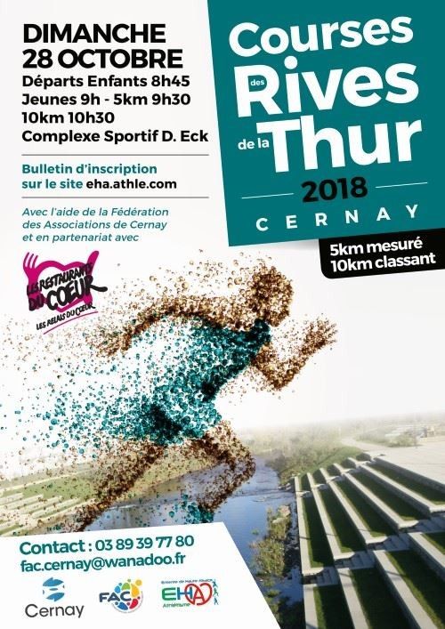 4èmes courses des Rives de la Thur à Cernay. Au programme, 10km classant et 5km mesuré pour les plus grands, 2km pour les jeunes et un 800m pour les petits.