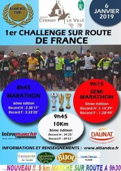 Pour la 6ème année consécutive, CERNAY LA VILLE, cette petite commune des Yvelines au coeur du Parc Naturel de la Vallée de Chevreuse, est la ville d’accueil des premières courses sur route de l’année avec le 1er MARATHON DE FRANCE, le 1er SEMI MARATHON DE FRANCE et un 10 km. Déjà un record de participation avec plus de 900 participants sur les 3 courses dont près de la moitié sur le semi marathon.
