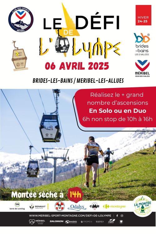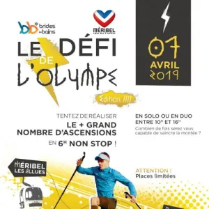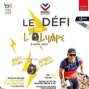 Méribel Sport Montagne vous propose le « défi de l’Olympe ». Une épreuve ludique à destination des rois de la grimpe. LE PRINCIPE ? Un défi de 06h00 sur une montée sèche et chronométrée dans les gorges au départ de la station de Brides-les-Bains jusqu’au centre des Allues-Méribel. Ne retenez que la montée longue de 3.5kmpour 520 m/d+ puisque ce sera l’élément central de ce défi.