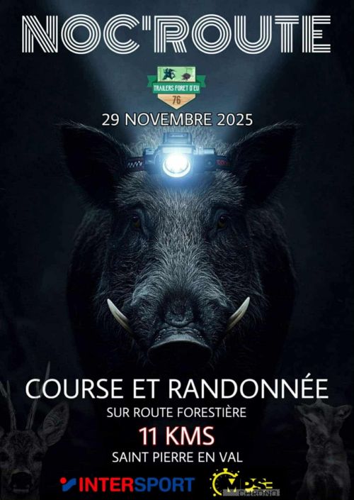 La Noc'Route est une course pédestre et une randonnée nocturne de 11 km, organisée par les Trailers de la Forêt d'Eu. Elle se déroule au départ de Saint-Pierre-en-Val, un village de Seine-Maritime niché au cœur de la forêt d'Eu, sur un parcours accessible traversant routes bitumées et chemins forestiers, avec un dénivelé modéré d'environ 165 m. Lampe frontale et baudrier réfléchissant sont requis pour profiter en sécurité de cette balade en nature. Rejoignez cet événement familial pour une soirée simple et conviviale, une occasion de bouger et de partager un moment au calme en forêt.