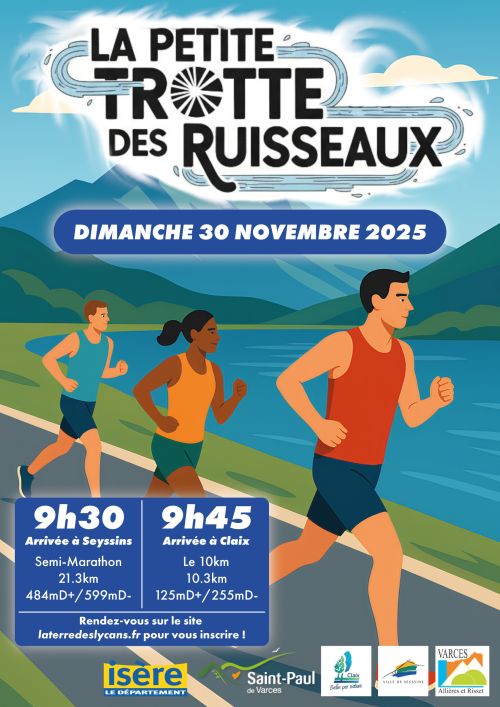 La Petite Trotte des Ruisseaux est un semi-marathon vallonné qui se déroule à Claix, dans les contreforts est du Vercors, au pied de la façade montagneuse. Le parcours emprunte petites routes, chemins et voies vertes, traversant des paysages de ruisseaux et de nature préservée, à proximité de Grenoble dans l'Isère. Rejoignez cet événement pour une course accessible, conviviale et adaptée à divers niveaux, et découvrez le plaisir d'une balade sportive en pleine campagne.