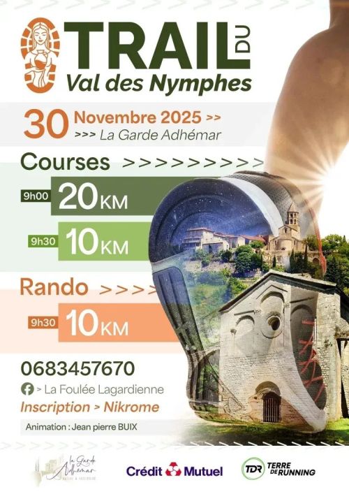 Le Trail du Val des Nymphes invite à explorer les sentiers ombragés de La Garde-Adhémar, un village perché de la Drôme provençale, aux abords de la chapelle du Val des Nymphes et de ses sources anciennes. Ce parcours traverse vignes et monotraces avec vue sur l'arrière-pays. Rejoignez l'événement pour une course accessible qui allie effort modéré et découverte paisible de la nature locale.