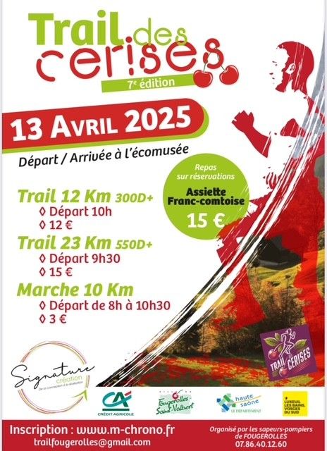 Trail au coeur du patrimoine Fougerollais, avec de nombreux passages au milieu des cerisiers en fleurs..