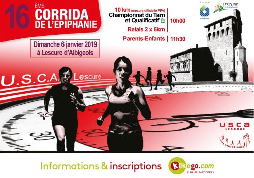 16ème corrida de l'Epiphanie, qui attire de plus en plus de coureurs (plus de 550 participants en janvier 2018). Le circuit est constitué d'une boucle de 5 km plate, donc très roulante, qu'il faut parcourir 2 fois. Le record de l'épreuve sur le 10 km individuel est de 30mn20s. Le départ de cette course, ainsi que la course en relais par équipe (2 * 5 km) sera donné à 10h00 précises.
