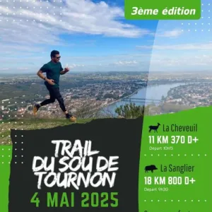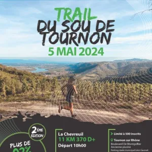 Salut les sportifs, Venez participer à la quatrième édition du Trail du Sou de Tournon le dimanche 4 mai 2025 à l'ancienne piscine municipale, Boulevard De Montgolfier 07300 Tournon-sur-Rhône.