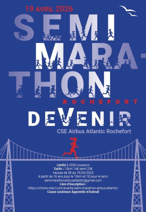 Course traversant le site d'Airbus Atlantic Rochefort, passage autour des monuments historiques (Pont transbordeur, corderie royale, longe la Charente, Centre-Ville, port, place Colbert...). Nombreuses animations pendant la course, restauration et buvette sur place. Bénéfices reversés à l'association Grégory Lemarchal.