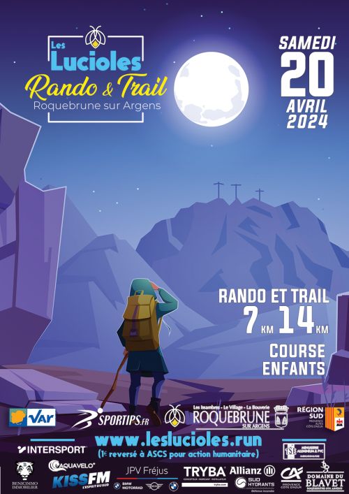 LES LUCIOLES Rando & Trail Nocturne est une randonnée à allure libre et une course nature chronométrée de type Trail, inscrite au calendrier fédéral, qui se déroule de nuit, dans le massif forestier, à proximité du Rocher de Roquebrune sur Argens. Les participants, équipés d’une lampe frontale, pourront découvrir les sentiers balisés, plutôt techniques, de nos montagnes. Un balisage spécifique de nuit sera mis en place.