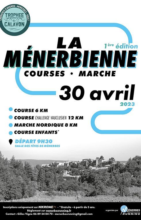 Ménerbes Running organise SA course, La Ménerbienne ! Avec 3 courses, une randonnée pédestre non chronométrée et des courses enfants.