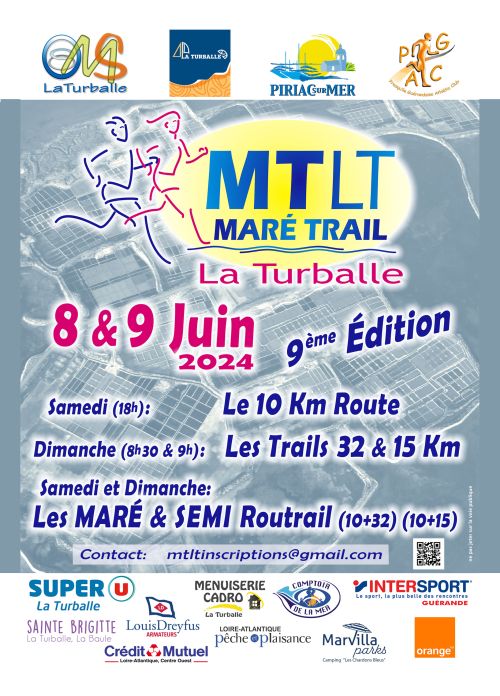 La Turballe Mare Trail dans un cadre unique, où les participants évolueront sur route, en forêt, dans les marais salants et sur sable. 5 courses proposées avec 3 départs: samedi à 18h00 et dimanche à 8h30 et 9h00.