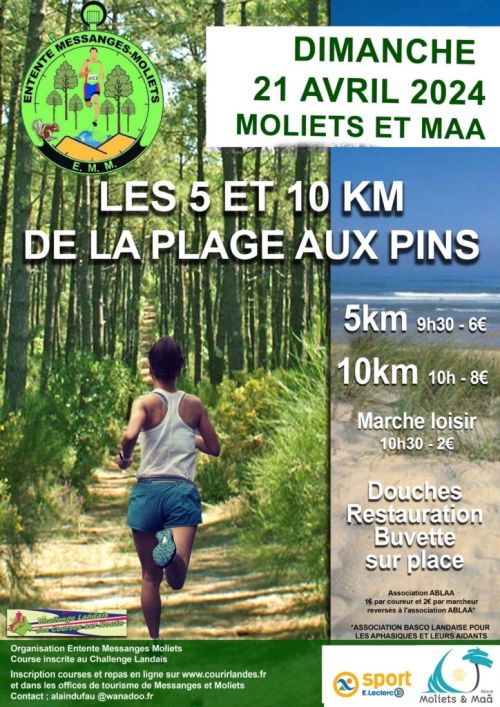 Epreuve dont le parcours allie piste cyclable, sous-bois et charme d'un petit village typique. Proche océan et plages. Repas convivial sur réservation. Course organisée par des coureurs, pour des coureurs. Récompenses aux premiers de chaque catégorie et nombreux lots au tirage au sort.