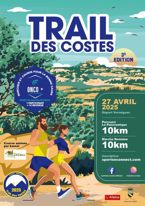 Trail des Costes au départ du village de Vernegues. Venez découvrir le massif des Costes en courant. Au programme, du single, des beaux chemins et les plus beaux points de vues du massif ou vous pourrez prendre le temps d’admirer les trois villages que vous traverserez. Inscription et information sur courir en France