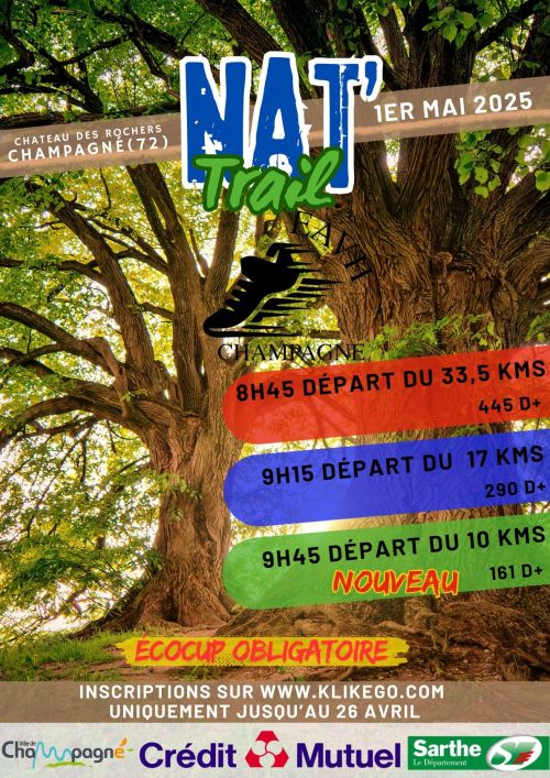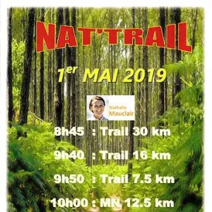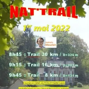 Epreuve marrainée par Nathalie MAUCLAIR, championne du monde de trail, . Type terrain très varié et très dynamique. Ravitaillement gastro à l'arrivée. Récompenses aux 3 premiers de chaque catégorie. Parking(à 500m du depart) et toilettes sèches à disposition