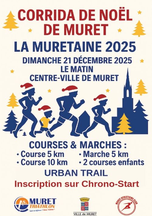 La Corrida de Noël de Muret est une course conviviale qui se déroule dans le centre historique de la ville de Muret, au sud de Toulouse, à travers les rues illuminées pour les fêtes. Ouverte à tous, elle permet de partager un moment sportif et solidaire en famille ou entre amis avant les célébrations de fin d'année. Venez participer pour allier effort physique et ambiance festive.