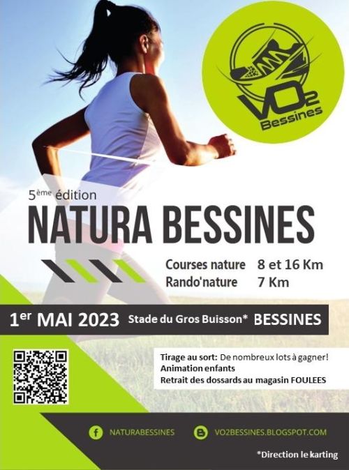 Les courses et randonnées pédestres "Natura Bessines" sont organisées par le Club VO2 BESSINES, club affilié FFA.
