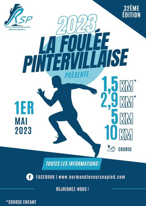 L'association Sportive Pintervillaise organise sa 32ème édition de la foulée Pintervillaise le 1er Mai 2023. Au programme : 4 courses (10, 5, 2.5 et 1.9km), de la bonne humeur et du plaisir.