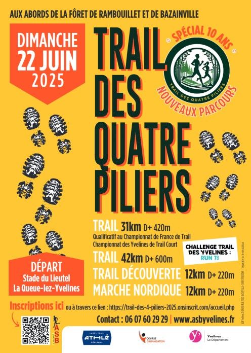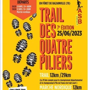 Le Trail des 4 Piliers (T4P) regroupent un trail de 31 kms environ, un trail et une marche Nordique de 12 kms environ. Cette épreuve se déroule essentiellement sur chemins et sentiers dans les forêts entre Bazainville et la Queue les Yvelines. Le circuit se fera en semi autonomie avec un point ravitaillement solide et liquide à mi-course pour le trail et la Marche Nordique de 12 kms et deux points de ravitaillement solide et liquide