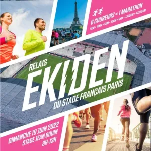 L’Ekiden du Stade Français Paris, avec un départ et arrivée au stade Jean Bouin (Paris 16). L’occasion de se dépasser tout en partageant un moment convivial et festif. L’Ekiden est un marathon (42,195 km) en relais dont les départs, les relais et les arrivées se font au Stade Jean Bouin. Les distances sont imposées et sont réalisées par 6 coureurs différents dans l’ordre suivant : 5 km, 10 km, 5 km, 10 km, 5 km, 7,195 km.
