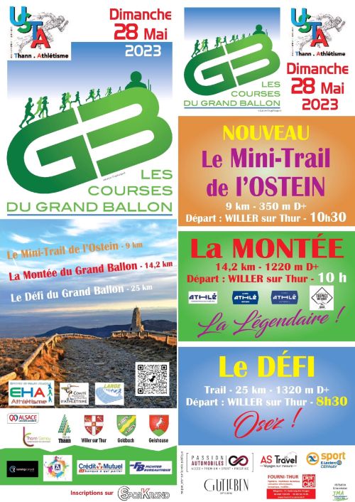 L’USTA innove cette année en organisant parallèlement à l’historique montée sèche du Grand Ballon un trail de 33km passant par le toit des Vosges. Au départ de Willer sur Thur, vous quittez rapidement la route pour prendre des chemins forestiers et des sentiers tortueux. Au sommet de la première difficulté, à la sortie de la forêt, vous découvrez le majestueux Grand Ballon et la deuxième grimpée qui vous attend. Reprenez votre souffle dans la descente qui vous mène à Goldbach.