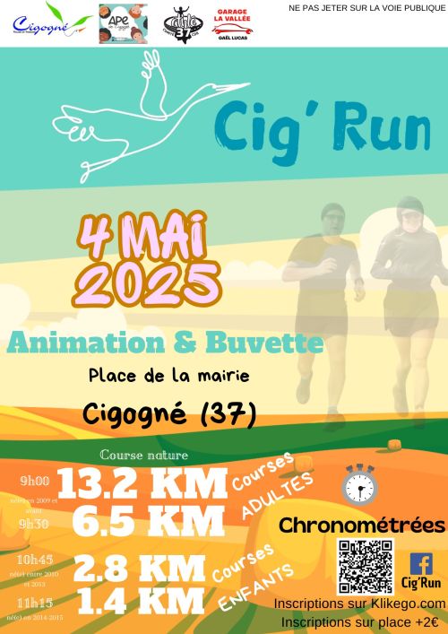 Une course nature au départ de l'école de Cigogné, organisée par l'école, organisée pour l'école et surtout ouverte à tous !