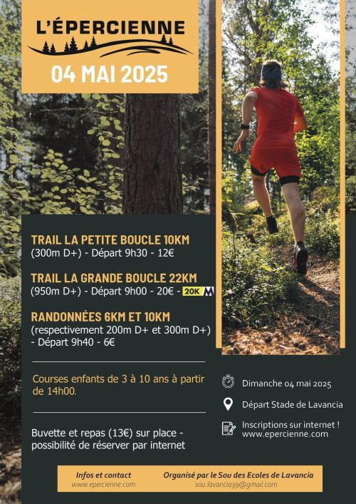 L'Epercienne organisée par le Sou des écoles Lavancia avec courses hors stade tous niveaux et une randonnée. Convivialité et bonne humeur au programme !