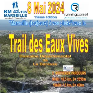 KM 42.195 Marseille organise le Trail des Eaux Vives en semi autosuffisance sur pistes sentiers, passages sur crêtes et terrains accidentés comptant pour le Super Challenge et la Coupe de Montagne FSGT.