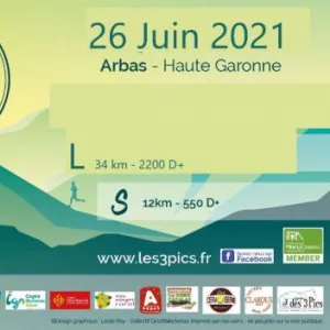 Trail des 3 Pics avec 4 parcours pour tous les niveaux au cœur des Pyrénées… Les départs se font depuis le pittoresque village d’Arbas (31). Les différents parcours XL(56km 3800d+), L(34km 2200d+), M(22km 1400d+) et la S(10km 500d+ tout nouveau parcours) vous amèneront découvrir les crêtes de Cornudères, le col du Portet d'Aspet, le Pic de la Calabasse (pour la XL) et le Pic de Cornudère ou le Col d'Arbas (pour la S).