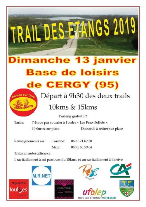 Les Feux Follets organiseront le tour des étangs a Cergy, première course nature de l'année avec un 10 km d'initiation ( pas trop de dénivelé avec des petites cotes ) et un 15 km.